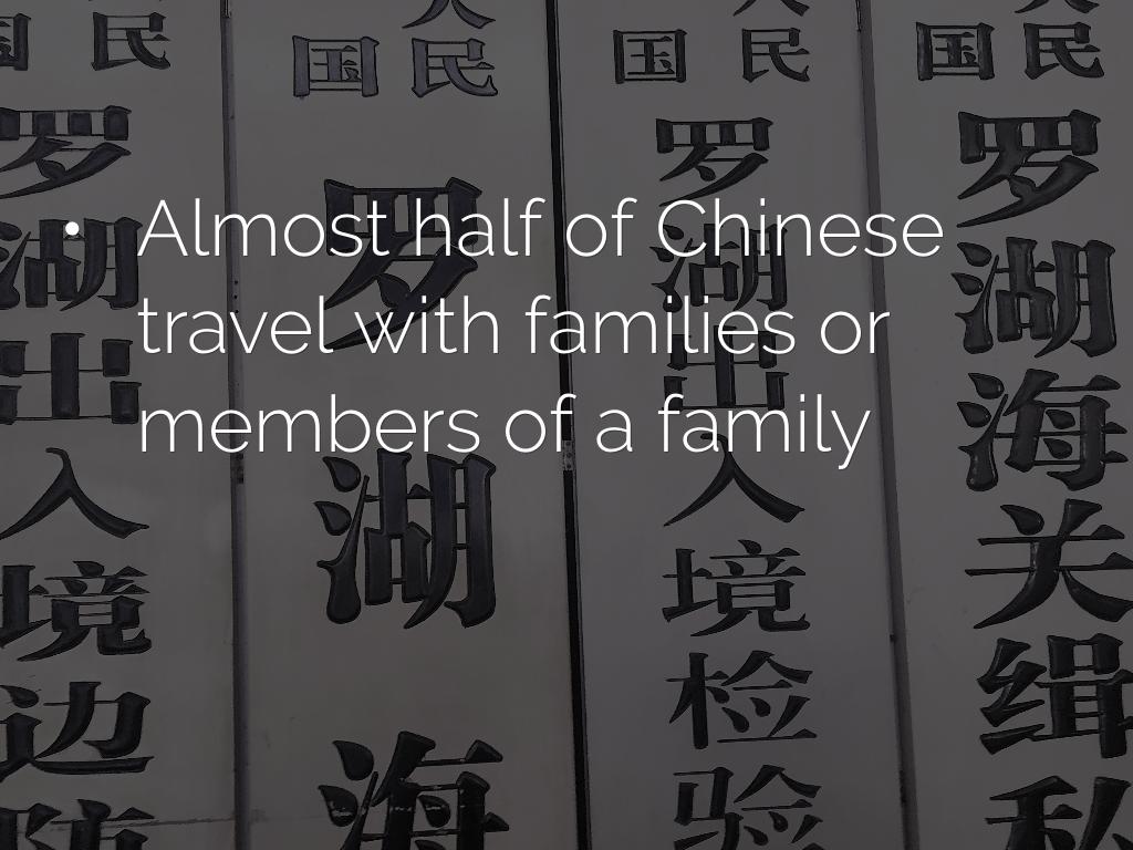 - Almost half of Chinese travel with families or members of a family