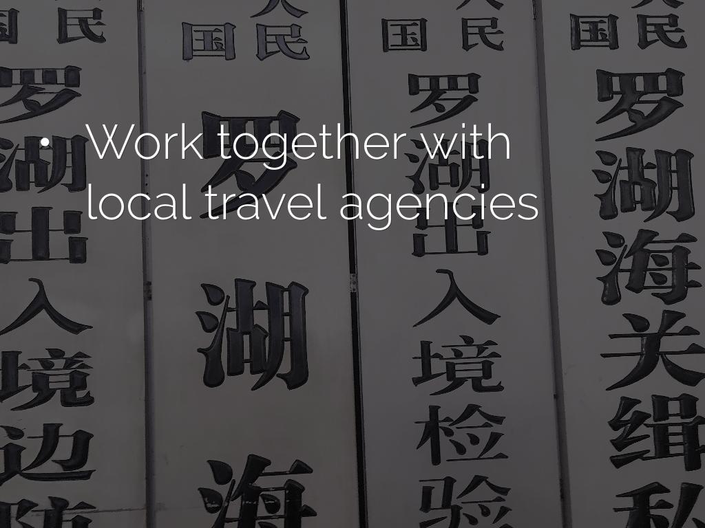 - Work together with local travel agencies