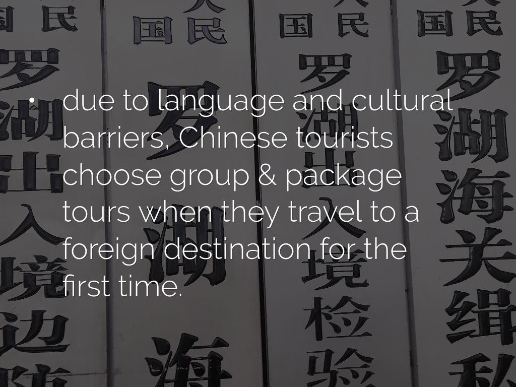 - due to language and cultural barriers, Chinese tourists