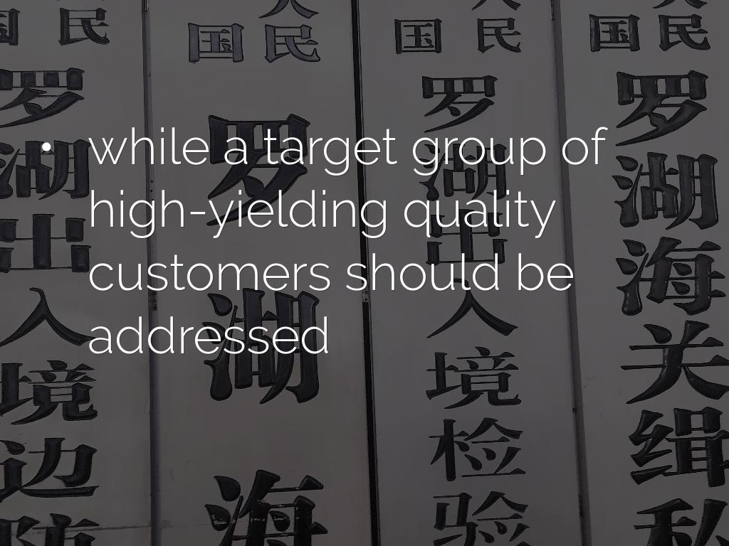 - while a target group of high-yielding quality customers should be