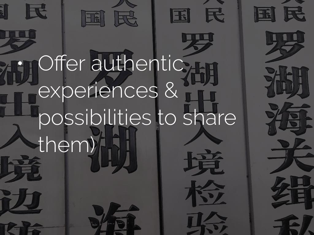 - Offer authentic experiences & possibilities to share them)