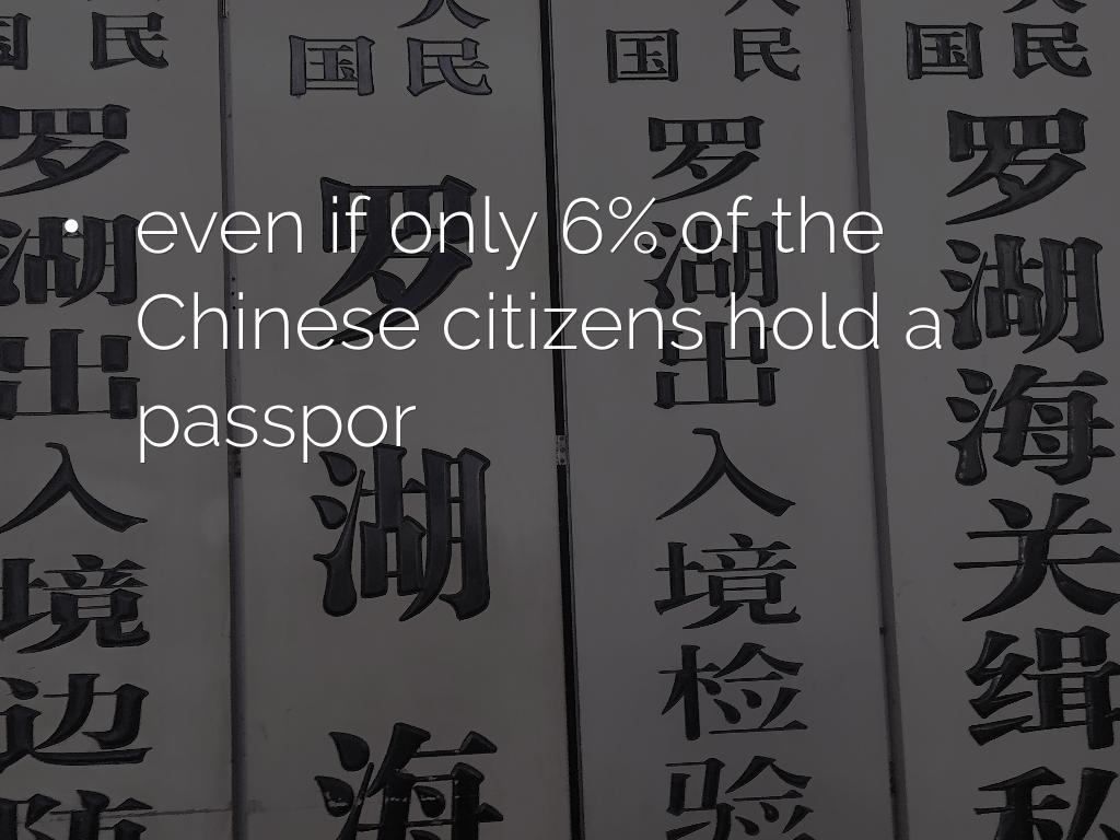 - even if only 6% of the Chinese citizens hold a passpor