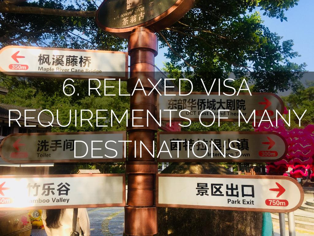 6. RELAXED VISA REQUIREMENTS OF MANY DESTINATIONS