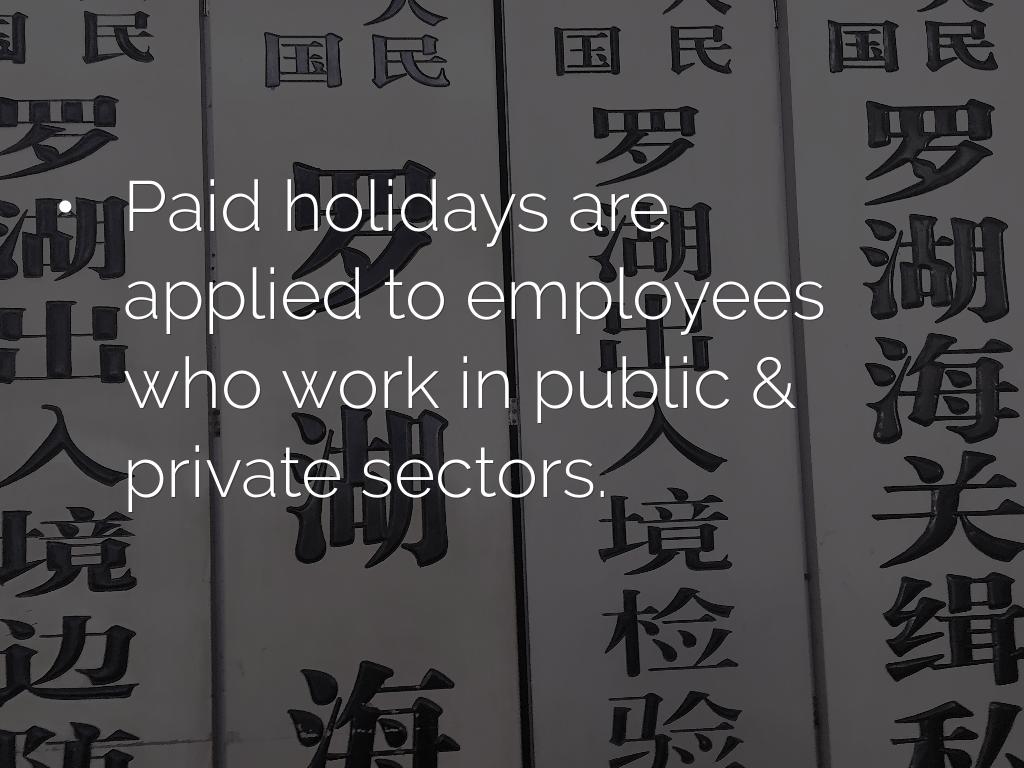 - Paid holidays are applied to employees who work in public & private sectors.