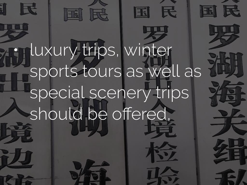 - luxury trips, winter sports tours as well as special scenery trips should be offered,