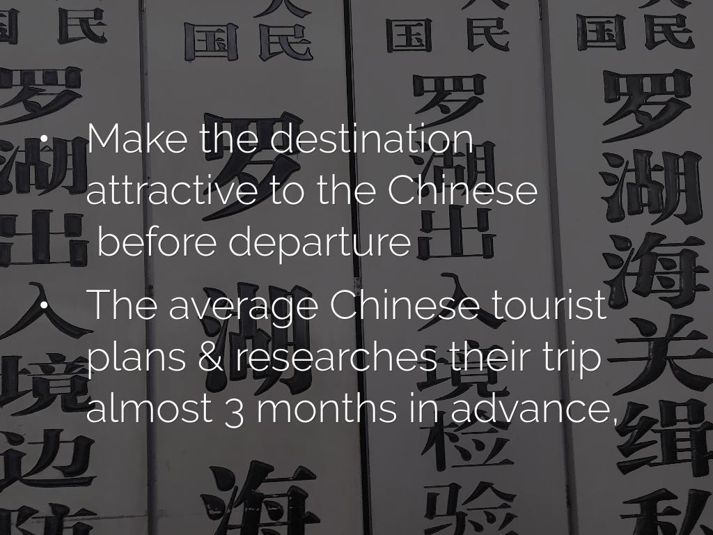 - Make the destination attractive to the Chinese before departure