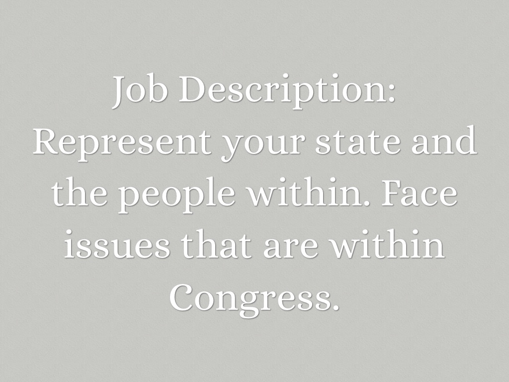 Represent your state and the people within. Face issues that are within Congress.