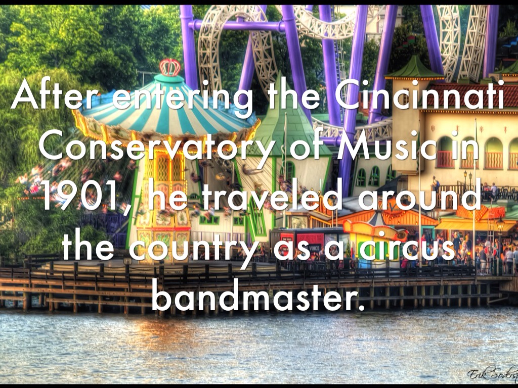 After entering the Cincinnati Conservatory of Music in 1901, he traveled around the country as a circus bandmaster.