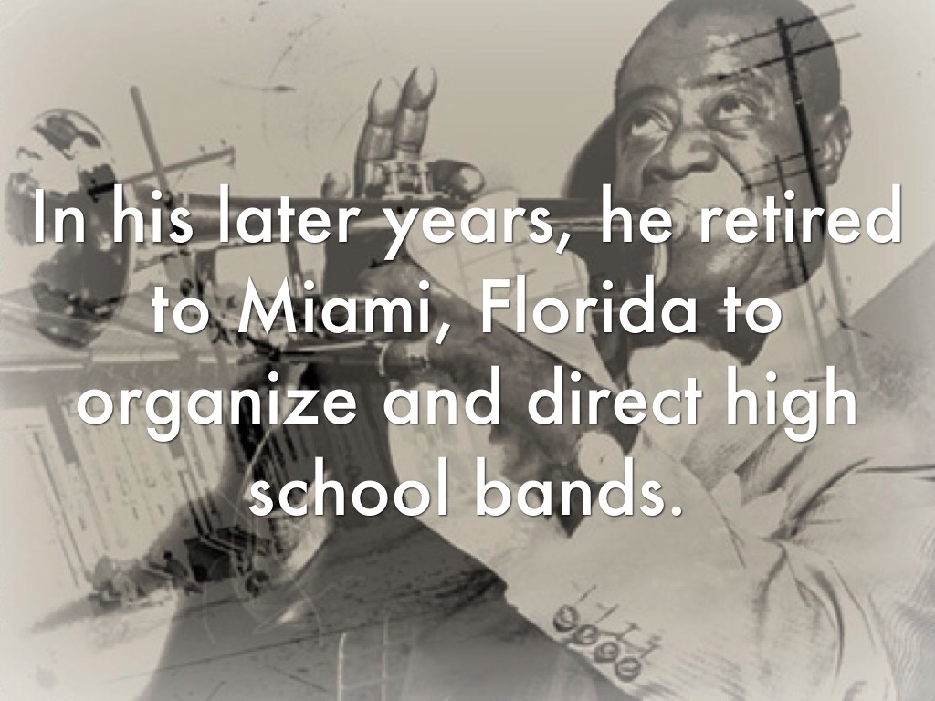 In his later years, he retired to Miami, Florida to organize and direct high school bands.
