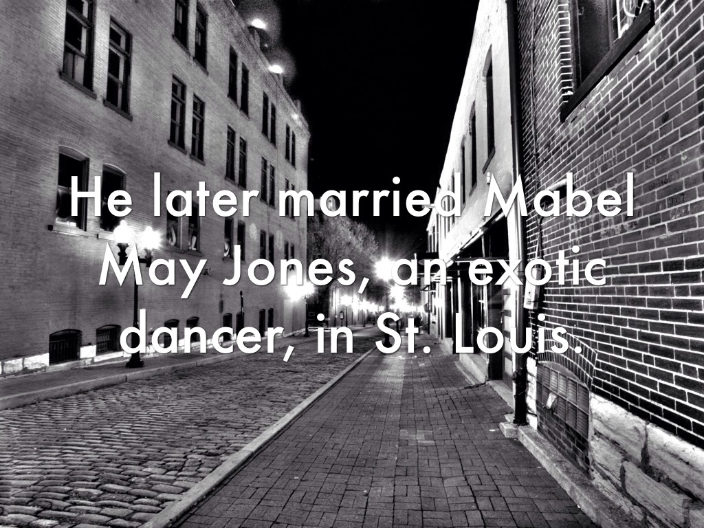 He later married Mabel May Jones, an exotic dancer, in St. Louis.