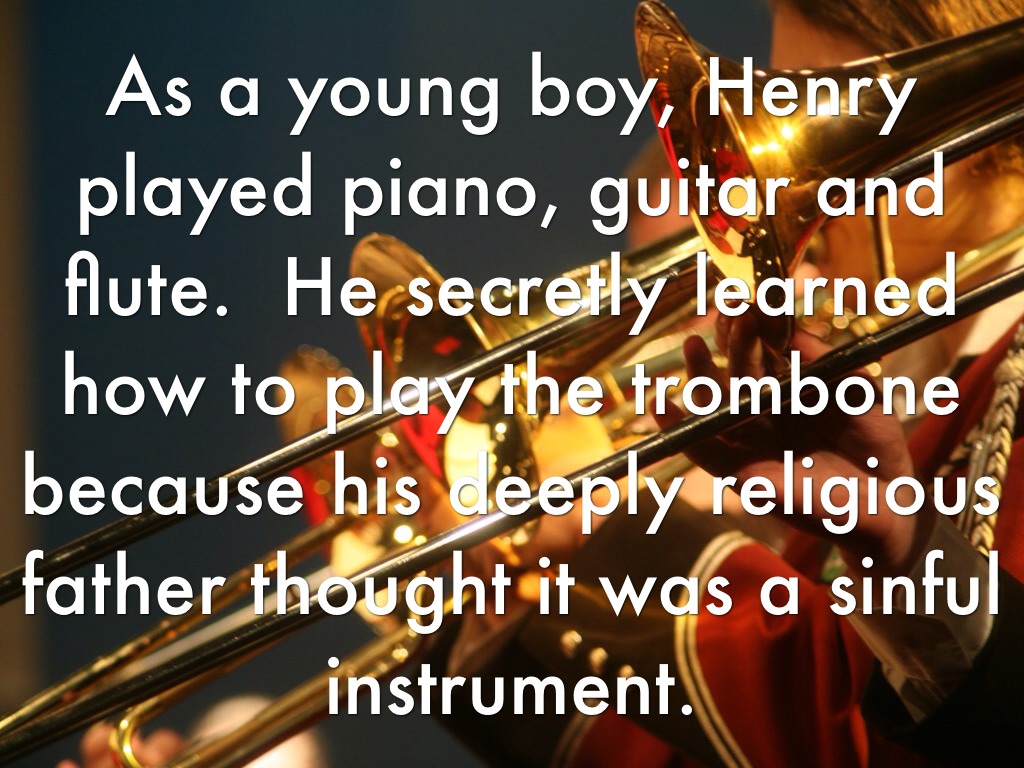 As a young boy, Henry played piano, guitar and flute. He secretly learned how to play the trombone because his deeply religious father thought it was a sinful instrument.