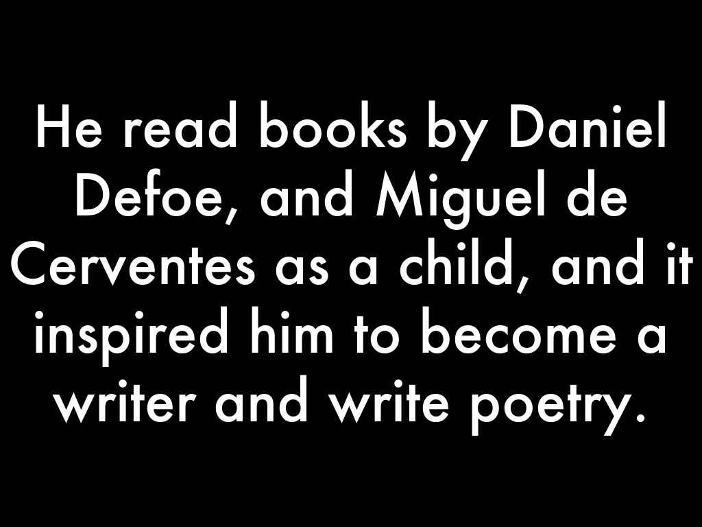 He read books by Daniel Defoe, and Miguel de Cerventes as a child, and it inspired him to become a writer and write poetry.