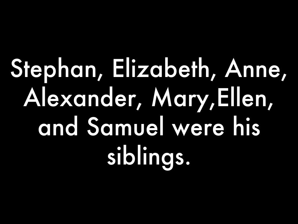 Stephan, Elizabeth, Anne, Alexander, Mary,Ellen, and Samuel were his siblings.