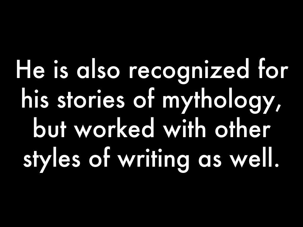 He is also recognized for his stories of mythology, but worked with other styles of writing as well.