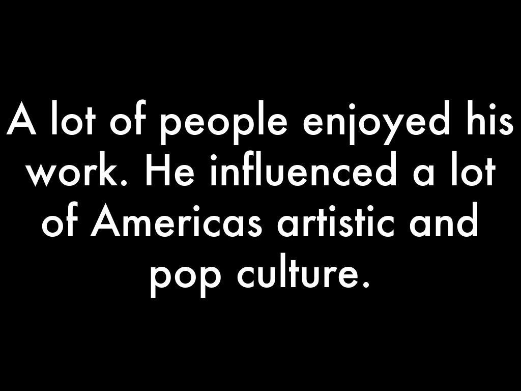 A lot of people enjoyed his work. He influenced a lot of Americas artistic and pop culture.