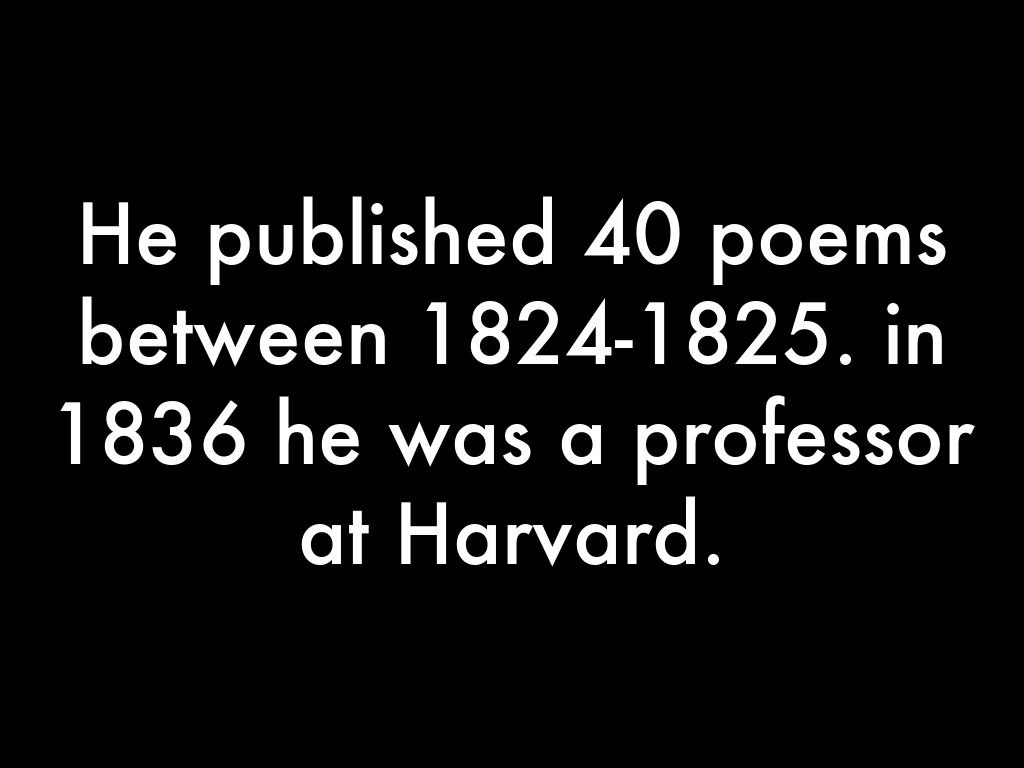 He published 40 poems between 1824-1825. in 1836 he was a professor at Harvard.