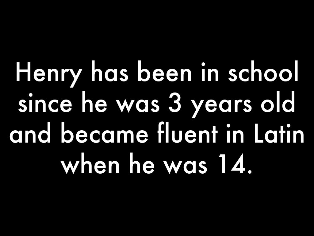Henry has been in school since he was 3 years old and became fluent in Latin when he was 14.