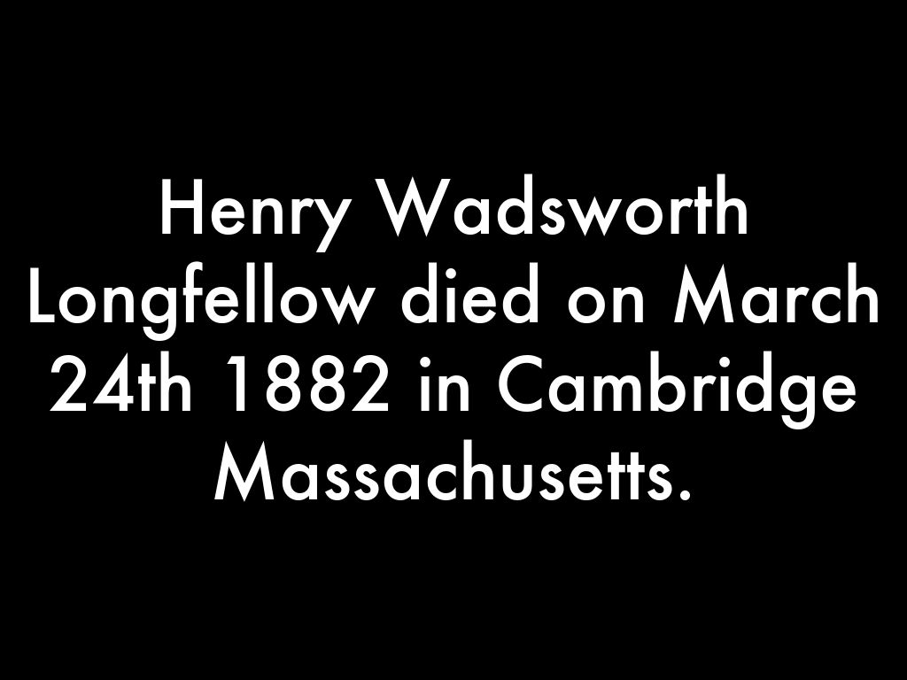 Henry Wadsworth Longfellow died on March 24th 1882 in Cambridge Massachusetts.