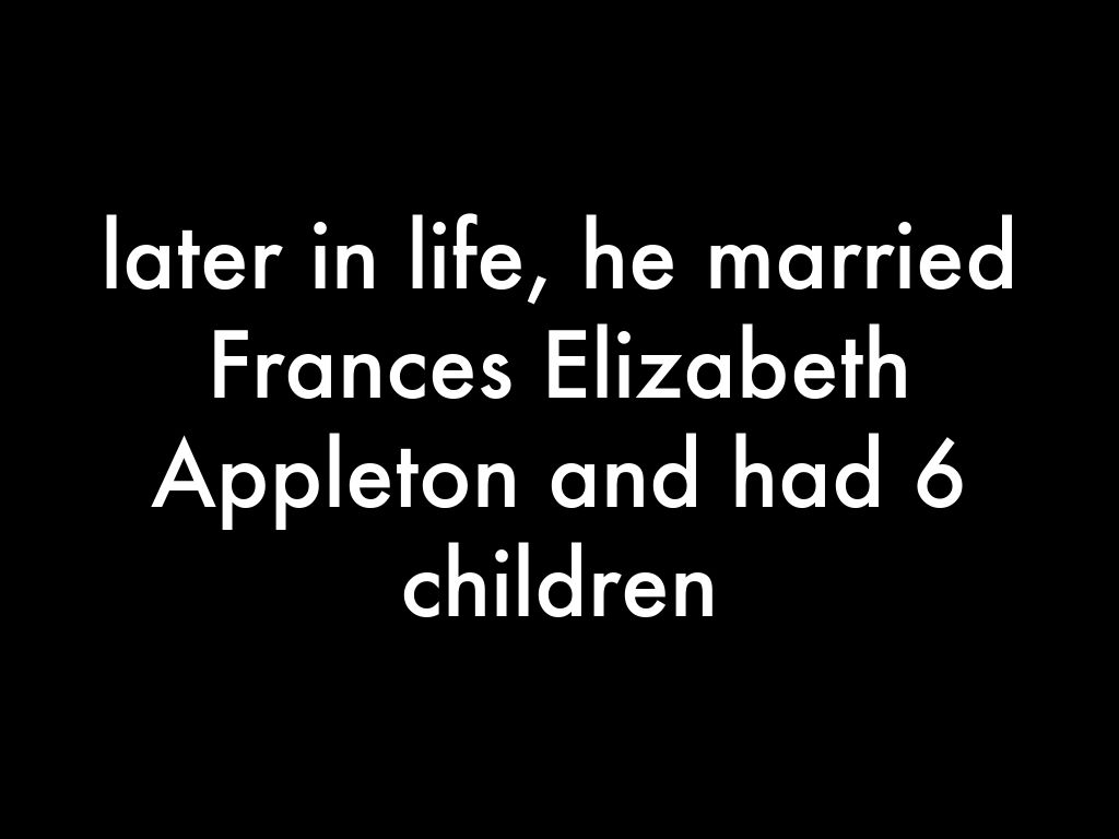later in life, he married Frances Elizabeth Appleton and had 6 children