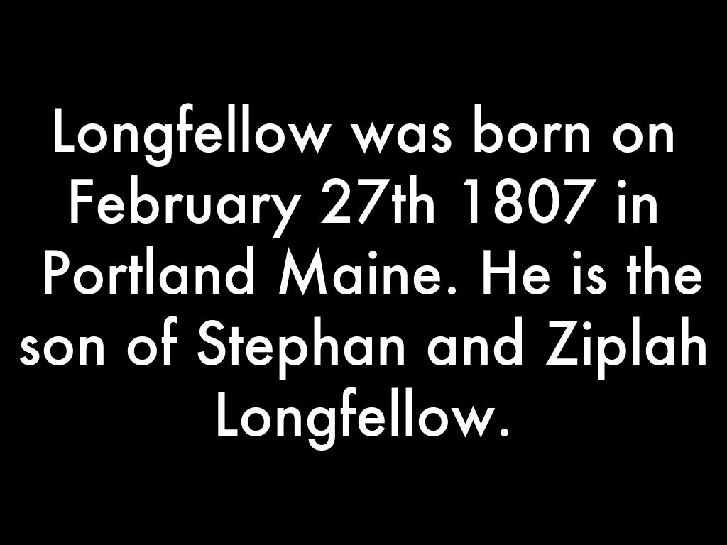 Longfellow was born on February 27th 1807 in Portland Maine. He is the son of Stephan and Ziplah Longfellow.