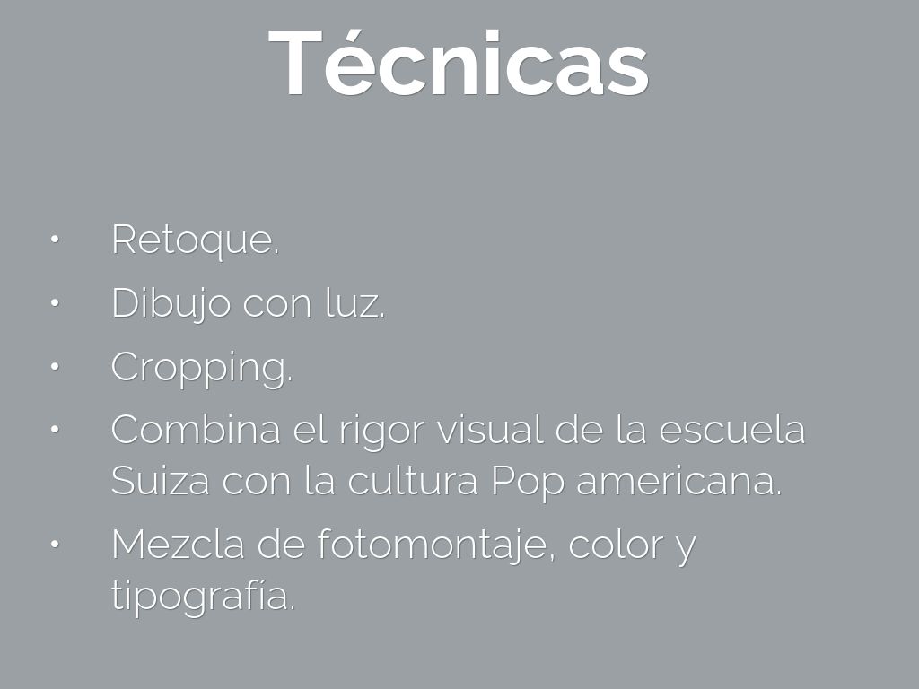Combina el rigor visual de la escuela Suiza con la cultura Pop americana.