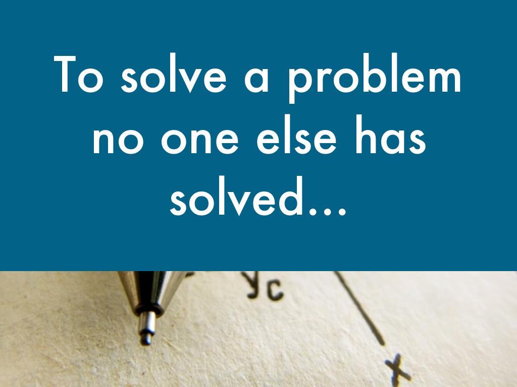 ...you just have to do what no one has thought of yet. You'll notice I have two different words there: You have to DO what know one has THOUGHT of yet. Sometimes they HAVE thought of it--but they've dismissed it. "That probably won't help enough to justify the hours," "That's probably unrelated", etc, but no one has actually DONE it.