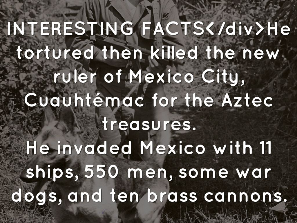 INTERESTING FACTSHe tortured then killed the new ruler of Mexico City, Cuauhtémac for the Aztec treasures.