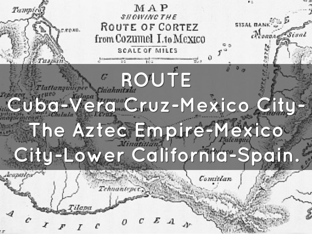 Cuba-Vera Cruz-Mexico City-The Aztec Empire-Mexico City-Lower California-Spain.