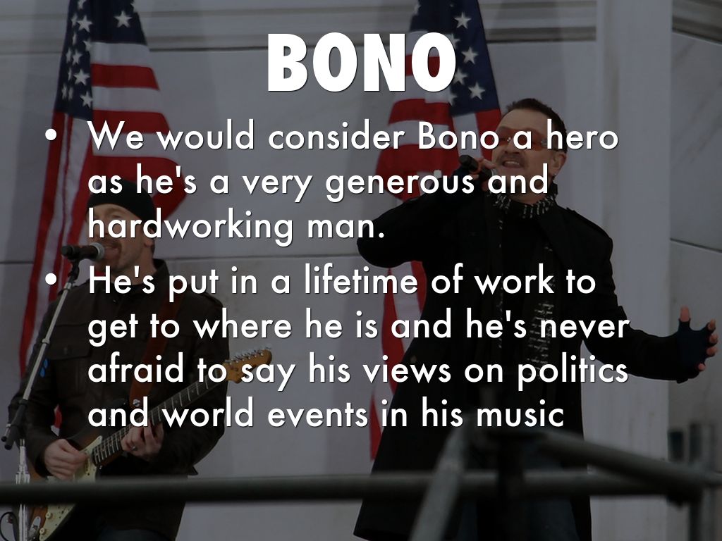 We would consider Bono a hero as he's a very generous and hardworking man.