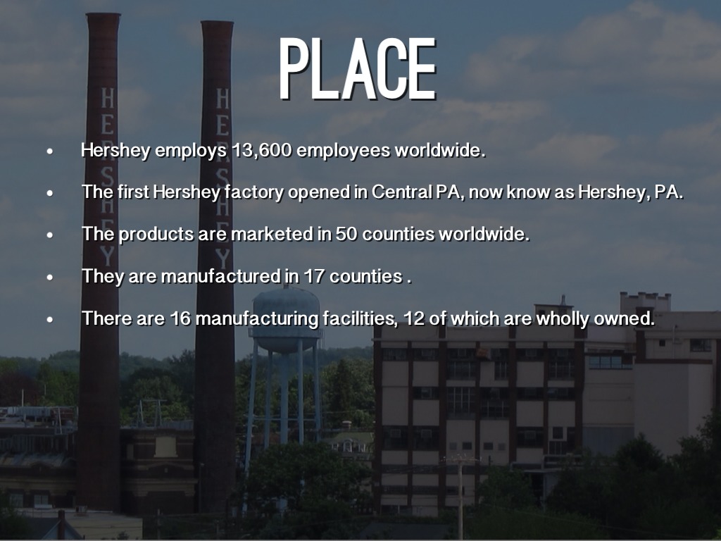 The first Hershey factory opened in Central PA, now know as Hershey, PA.