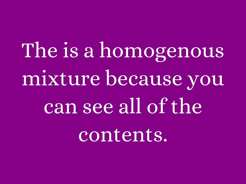 The is a homogenous mixture because you can see all of the contents.