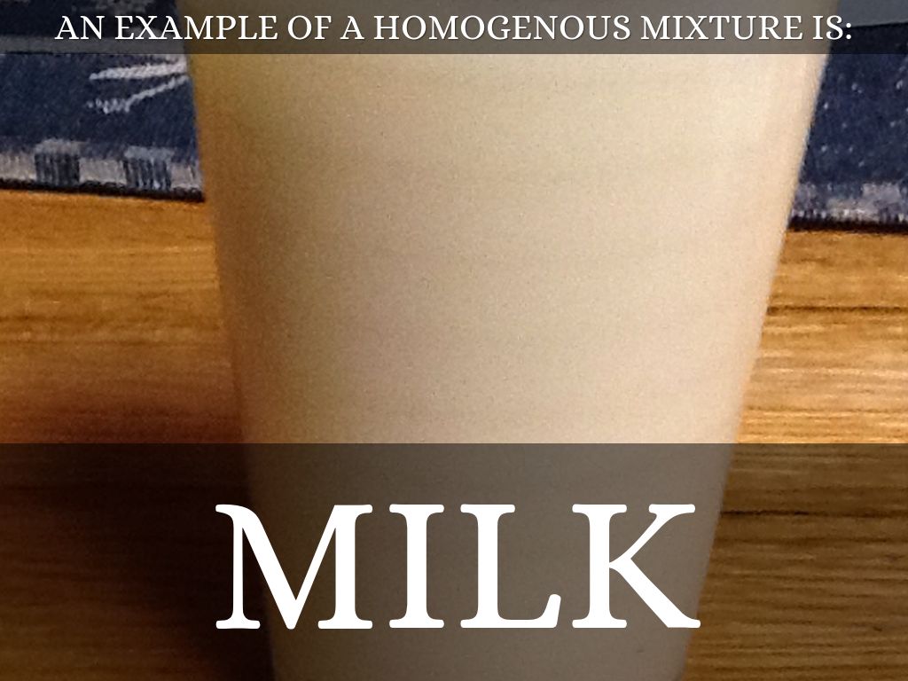 An example of a homogenous mixture is: