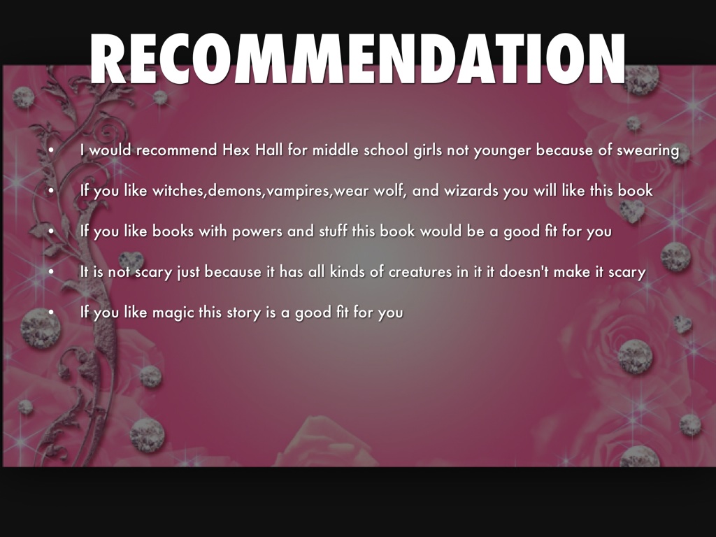 I would recommend Hex Hall for middle school girls not younger because of swearing