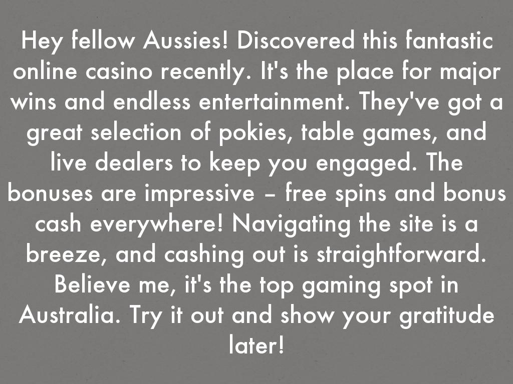 Hey fellow guys! Discovered this fantastic online casino recently. It's the place for major wins and endless entertainment. They've got a great selection of pokies, table games, and live dealers to keep you engaged. The bonuses are impressive – free spins and bonus cash everywhere <a href="https://boho-casino-boho.com/">Boho Casino</a> ! Navigating the site is a breeze, and cashing out is straightforward. Believe me, it's the top gaming spot in Australia. Try it out and show your gratitude later!