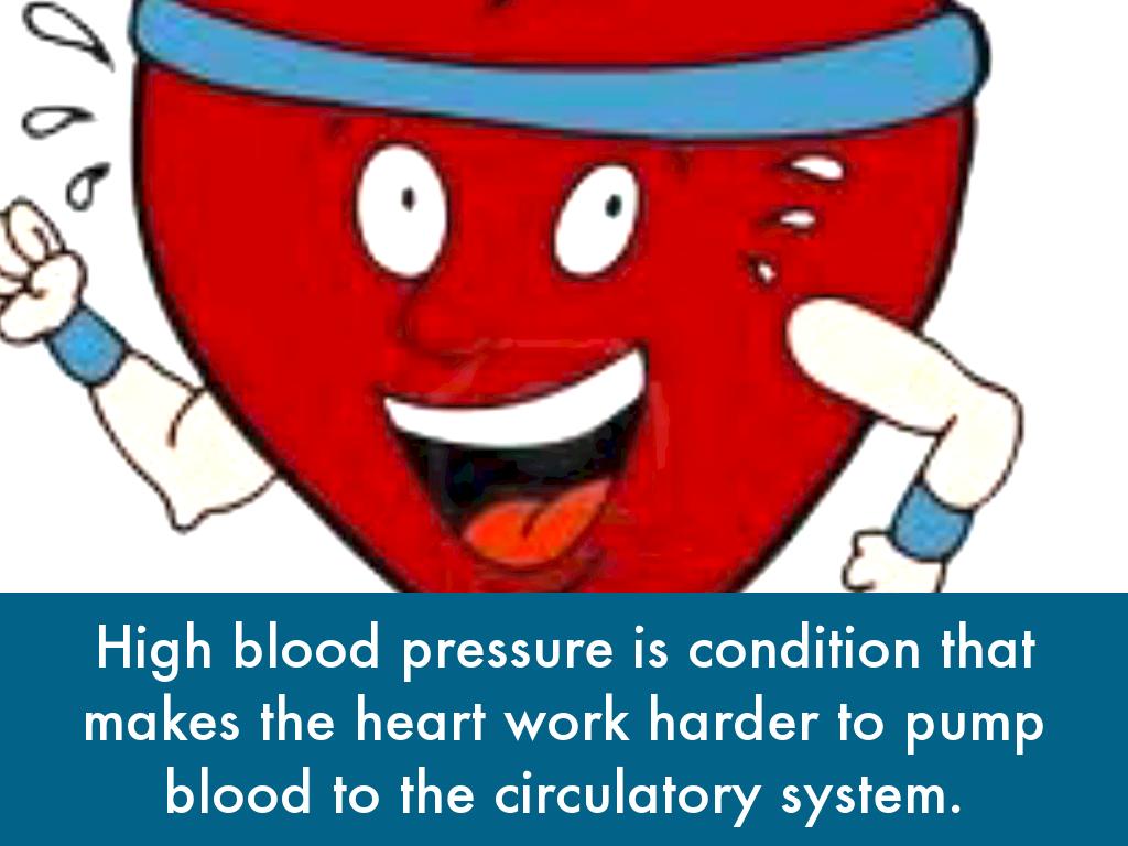 High blood pressure is condition that makes the heart work harder to pump blood to the circulatory system.
