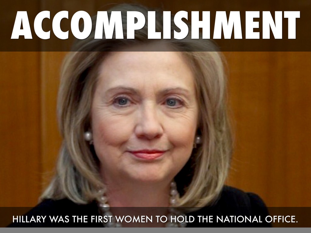 HILLARY WAS THE FIRST WOMEN TO HOLD THE NATIONAL OFFICE.