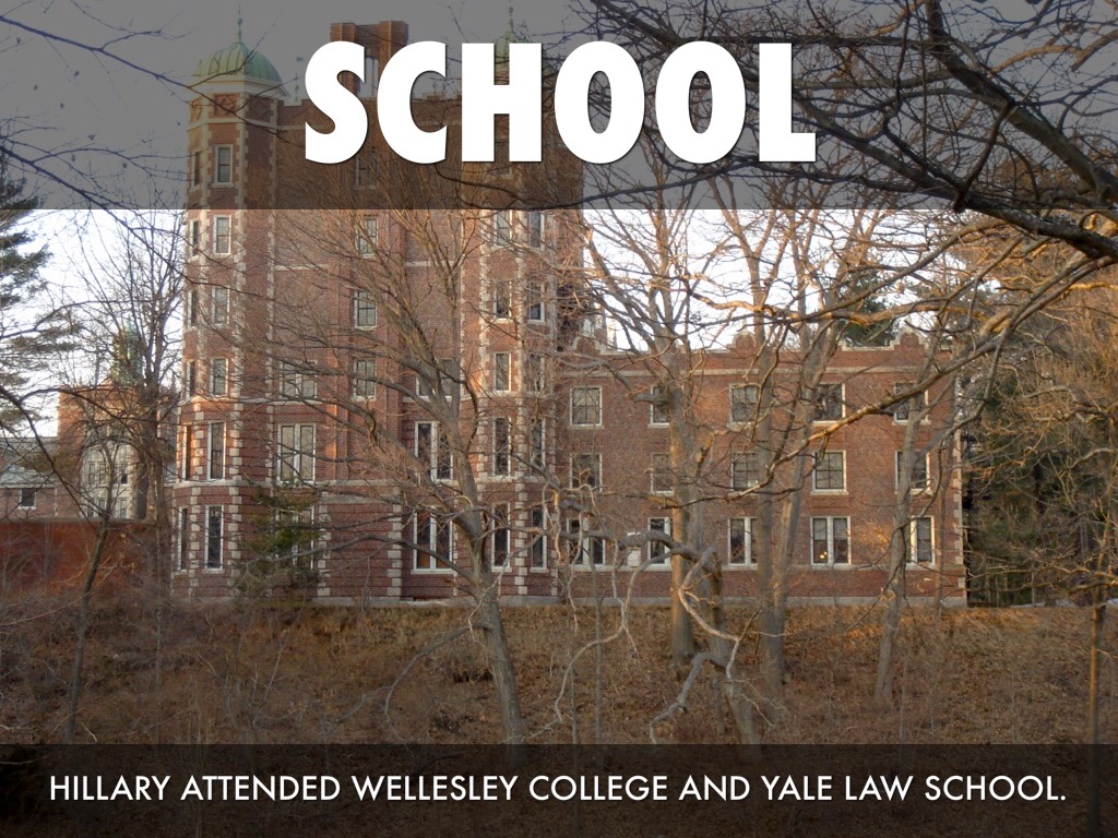 HILLARY ATTENDED WELLESLEY COLLEGE AND YALE LAW SCHOOL.