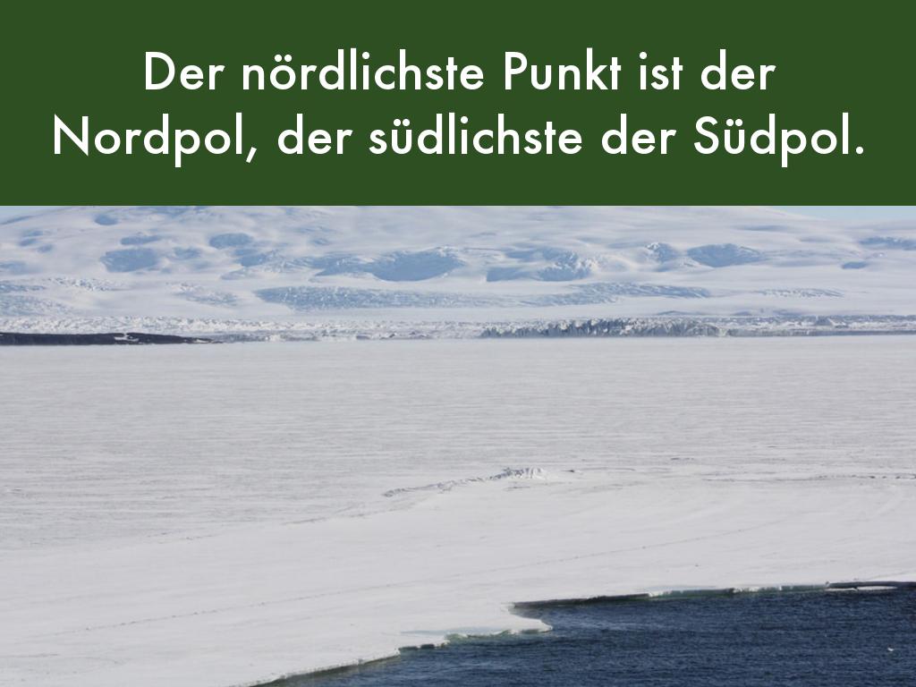 Der nördlichste Punkt ist der Nordpol, der südlichste der Südpol.