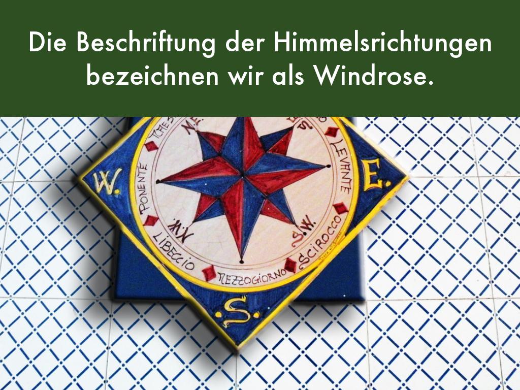 Die Beschriftung der Himmelsrichtungen bezeichnen wir als Windrose.