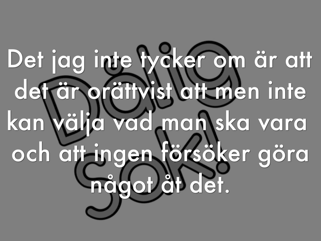 Det jag inte tycker om är att det är orättvist att men inte kan välja vad man ska vara och att ingen försöker göra något åt det.