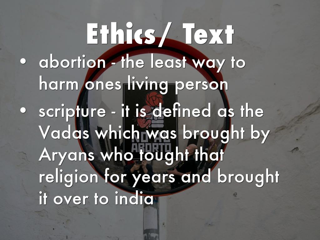scripture - it is defined as the Vadas which was brought by Aryans who tought that religion for years and brought it over to india