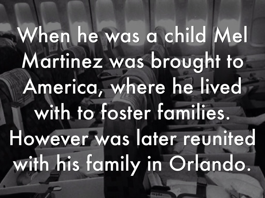 When he was a child Mel Martinez was brought to America, where he lived with to foster families. However was later reunited with his family in Orlando.