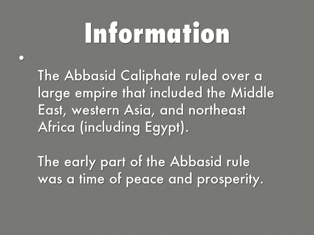 The Abbasid Caliphate ruled over a large empire that included the Middle East, western Asia, and northeast Africa (including Egypt).