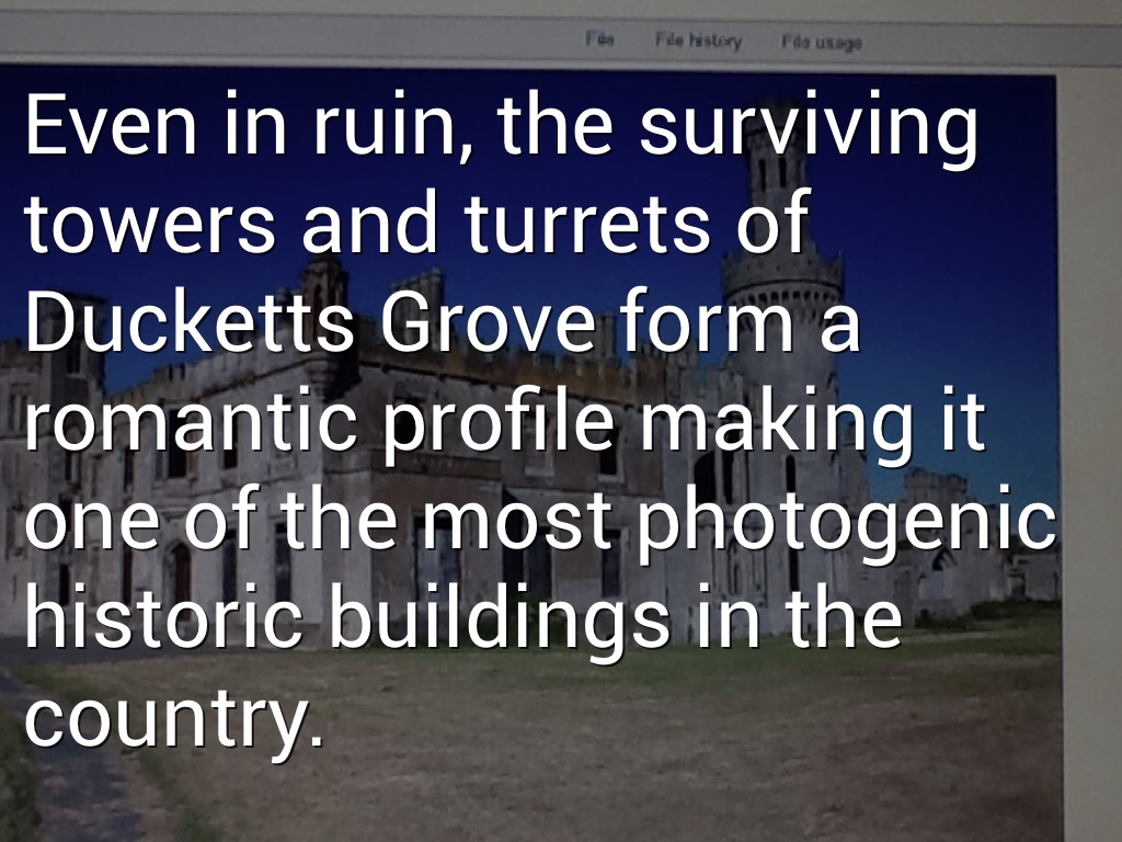 Even in ruin, the surviving towers and turrets of Ducketts Grove form a romantic profile making it one of the most photogenic historic buildings in the country.