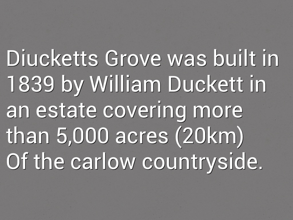 Diucketts Grove was built in 1839 by William Duckett in an estate covering more than 5,000 acres (20km)