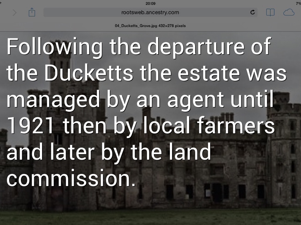 Following the departure of the Ducketts the estate was managed by an agent until 1921 then by local farmers and later by the land commission.