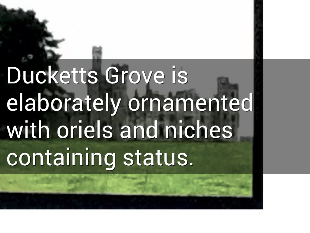 Ducketts Grove is elaborately ornamented with oriels and niches containing status.