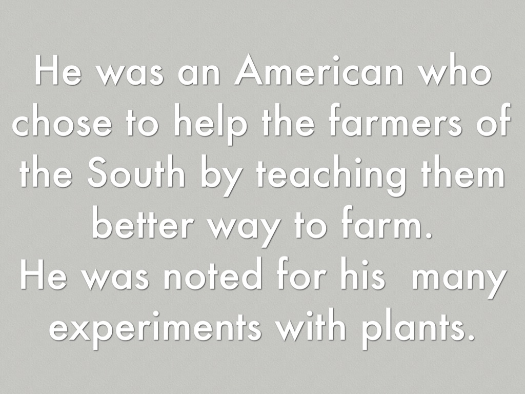 He was an American who chose to help the farmers of the South by teaching them better way to farm.