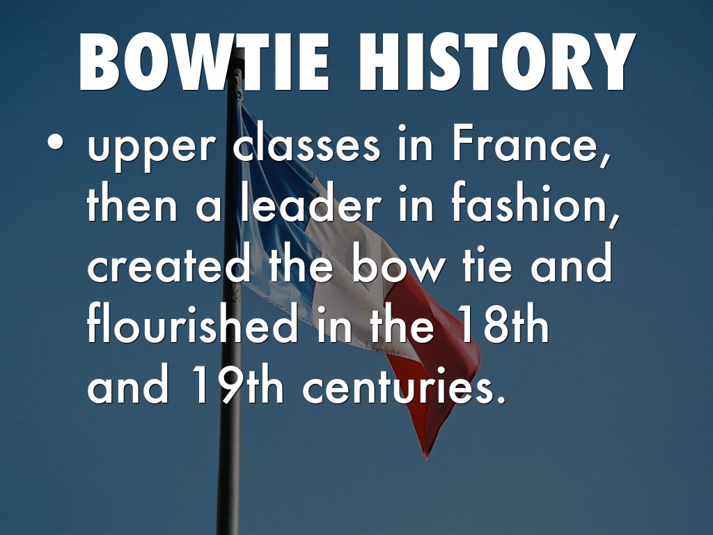 upper classes in France, then a leader in fashion, created the bow tie and flourished in the 18th and 19th centuries.