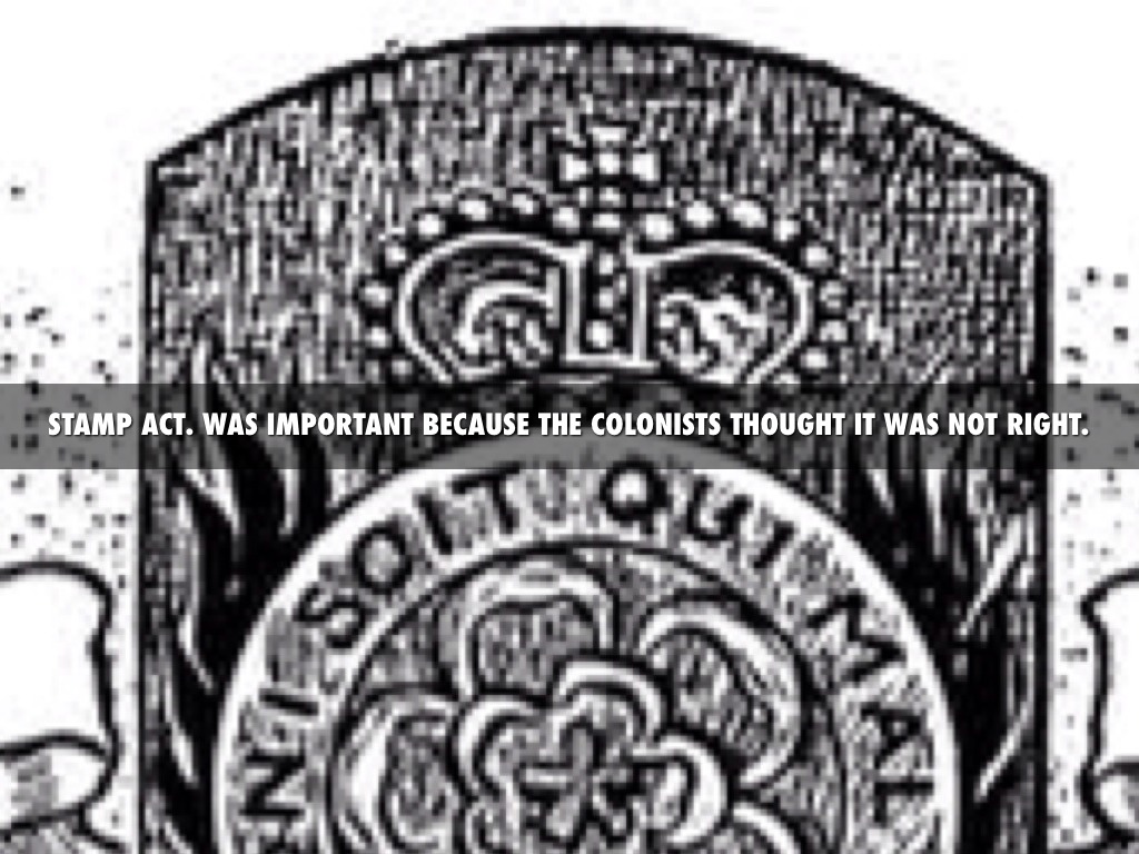 STAMP ACT. WAS IMPORTANT BECAUSE THE COLONISTS THOUGHT IT WAS NOT RIGHT.